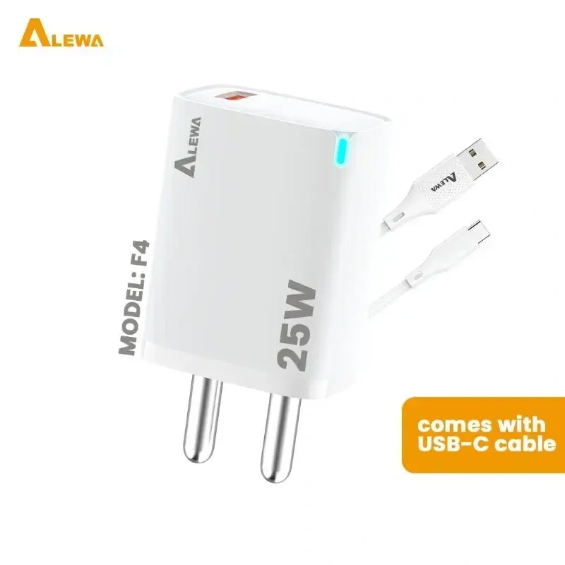 Alewa F4 25W PD Charger With USB to C Cable | LED Indicator