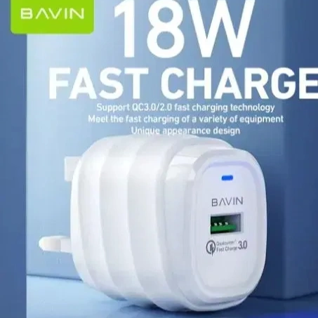The BAVIN PC555E QC3.0 18W Fast Charger with Lightning Data Cable delivers high‑speed charging performance using Qualcomm Quick Charge 3.0 technology, providing up to 18W of power for compatible devices. Designed with a built‑in Lightning data cable, the charger enables seamless fast charging and syncing for Apple devices without needing a separate cable. Its compact and travel‑friendly design makes it suitable for daily use at home, work, or on the go, while the smart charging circuitry automatically adjusts output to protect against overheating, overcurrent, and overcharging. The sturdy build and standard USB wall plug ensure stable power delivery and broad compatibility with a wide range of smartphones and tablets. With safety and convenience at its core, the PC555E is an efficient and reliable charging solution for fast‑charging needs.