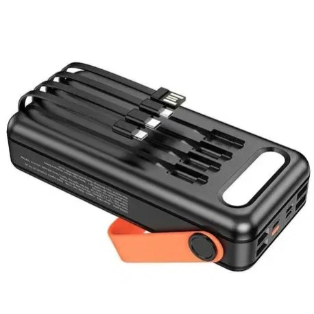 Equipped with multiple input optionsβMicro and Type-C (5V/2A, 9V/2A, 12V/1.5A)βand built-in Lightning and USB cables, this power bank offers universal compatibility for a wide range of devices. Its USB1 output supports up to 22.5W Max, while the Type-C PD output delivers 20W Max, enabling fast and efficient charging for modern gadgets. The 4 USB outputs, along with Type-C, Lightning, and Micro cable outputs, allow you to charge multiple devices at once with stable 2A current output.