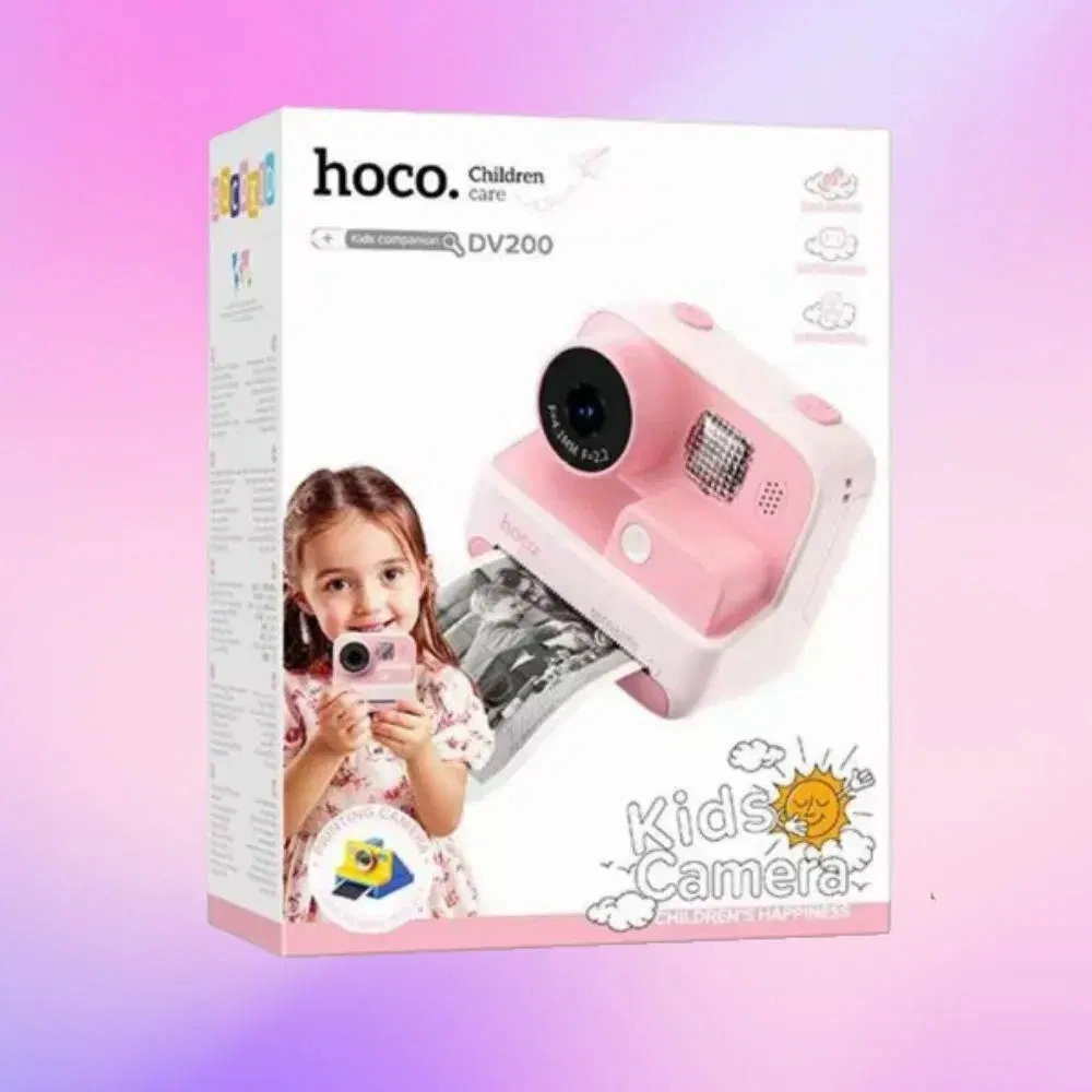 The HOCO DV200 Dual Lens Children Printing Camera is a fun and engaging digital camera designed specifically for children, combining creative photography with instant printing functionality. It features dual lenses that allow kids to capture vibrant photos up to 48 MP and record smooth 720P video at 30 fps, making every moment memorable and shareable. The camera is equipped with a 2.0‑inch IPS HD display for clear framing and easy navigation of settings. Powered by a built‑in 800 mAh rechargeable battery, this kids’ camera supports memory cards up to 32 GB to store hours of content. The printing feature brings excitement to photography by enabling instant printing of captured images without the need for ink cartridges. Designed with young users in mind, the device supports 14 languages to make menu navigation intuitive and fun. The package includes useful accessories such as photo paper rolls, color pens, and a lanyard, encouraging creativity and exploration. Compact, durable, and easy to use, the HOCO DV200 camera is an ideal gift for children to explore photography and capture unforgettable moments.