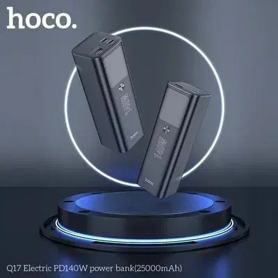 The HOCO Q17 Electric PD140W 25000mAh power bank is a high-capacity, ultra-fast charging solution designed for modern digital devices. It is the first power bank to support the PD3.1 protocol, delivering two-way 140W high power that can charge laptops, smartphones, tablets, and other USB devices efficiently. With the ability to charge up to three devices simultaneously, it is perfect for multitasking on the go. The color LED digital display provides real-time information on charging power, battery health, energy (Wh), and battery cycle counts, keeping you informed and in control. Its sleek black design combines portability with style, making it an ideal companion for travel, work, or daily use. Equipped with advanced safety features, including overcharge, overcurrent, and short-circuit protection, the HOCO Q17 ensures reliable and secure charging for all connected devices. Experience high-speed, safe, and intelligent charging with this powerful 25000mAh PD140W power bank.