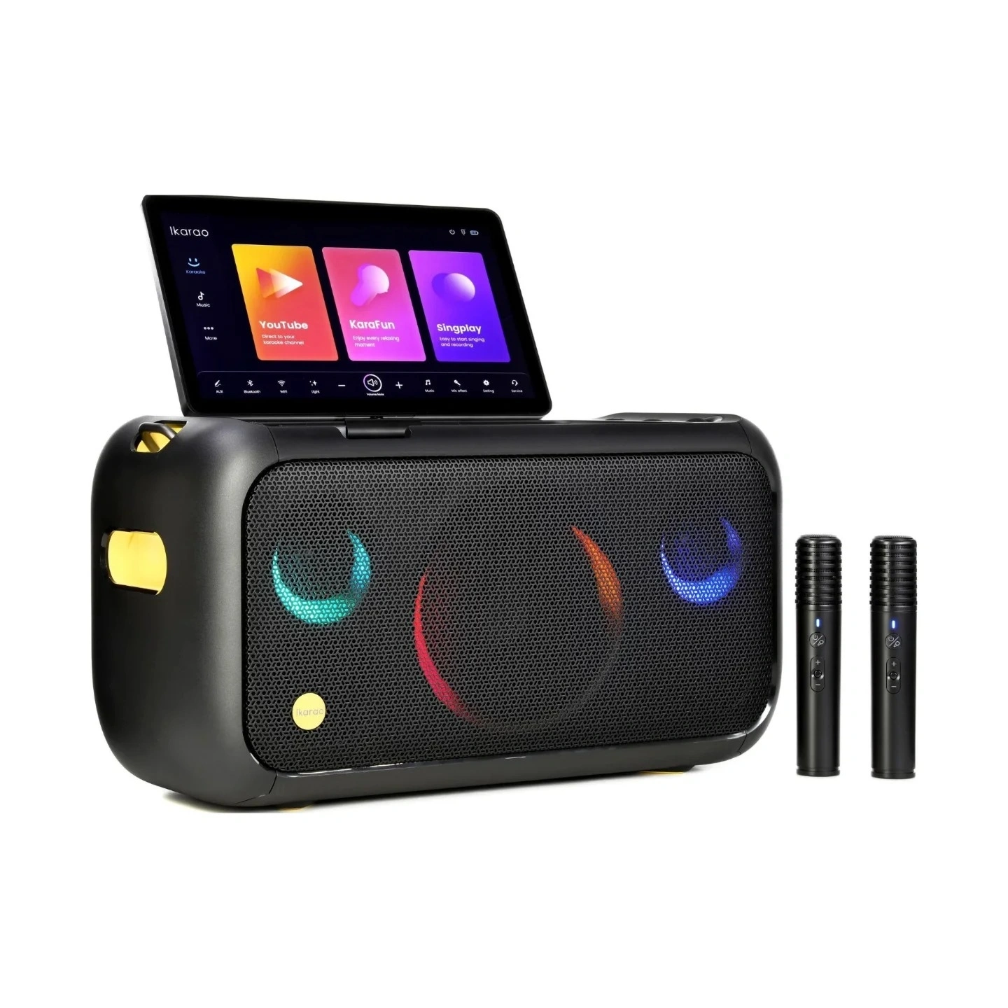 The iKarao Break X1 Black Premium is a compact yet powerful karaoke machine designed for effortless entertainment. With its sleek black premium design, 8-inch HD touchscreen, and dual self-charging wireless microphones, it offers a complete karaoke setup for homes, parties, and gatherings. Its 120 W peak sound system, multiple connectivity options, and app integration deliver a professional karaoke experience in a portable, stylish package. Perfect for both casual sing-alongs and more immersive sessions, the Break X1 Black Premium brings karaoke to life anywhere.