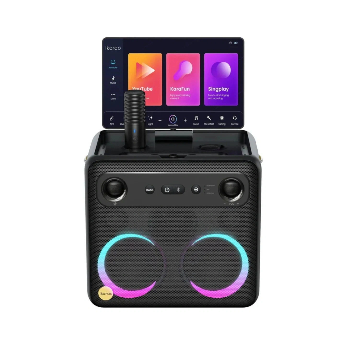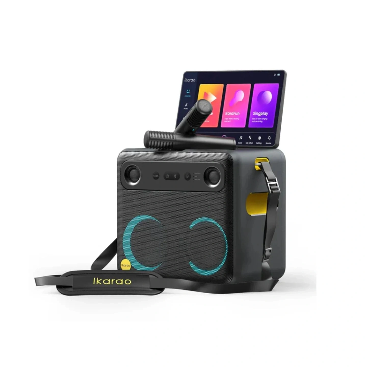 The iKarao Break X2 Premium is a high-performance karaoke system built for enthusiasts who want a professional singing experience at home, events, or parties. Featuring a 10-inch HD main touchscreen, a secondary 7-inch display, and two self-charging wireless microphones, it delivers both style and functionality. With premium 200 W peak audio output, rich connectivity, and advanced app integration, the Break X2 Premium ensures every performance feels like a live show. Its modern design and long-lasting battery make it a centerpiece for unforgettable entertainment.