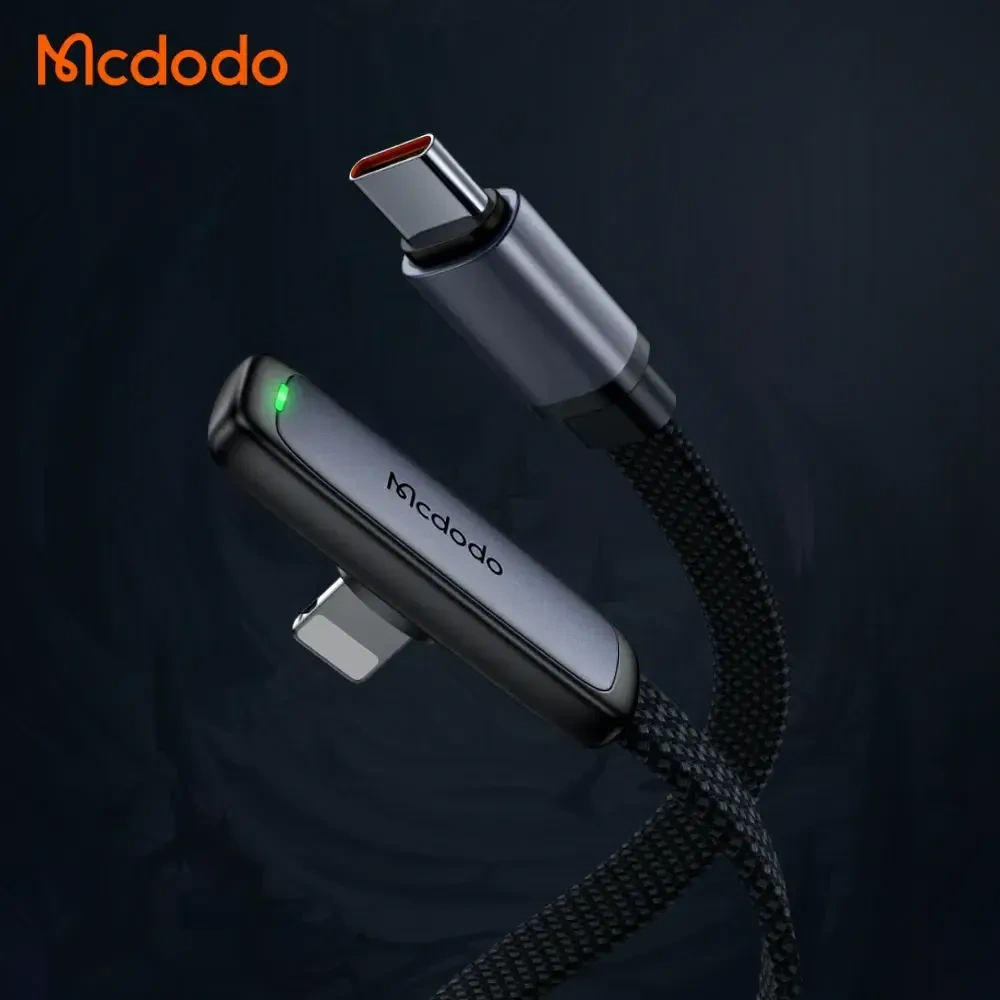 The MCDODO CA‑3350 90 Degree 36W Type‑C to Lightning Data Cable 1.2m is a premium charging and data cable designed for Apple devices with a Lightning port. Built to deliver fast and efficient charging, this cable supports up to 36 W PD fast charging at 3 A, ensuring your iPhone, iPad or AirPods gets charged quickly whenever you need it. Its 90‑degree angled connector provides an ergonomic design that minimizes strain on both the cable and your device’s port, making it ideal for gaming, streaming or everyday use without the cable getting in the way. The cable is constructed from high‑quality materials — including nylon braiding, aluminum alloy and TPE insulation — for enhanced durability and resistance to wear and tear.