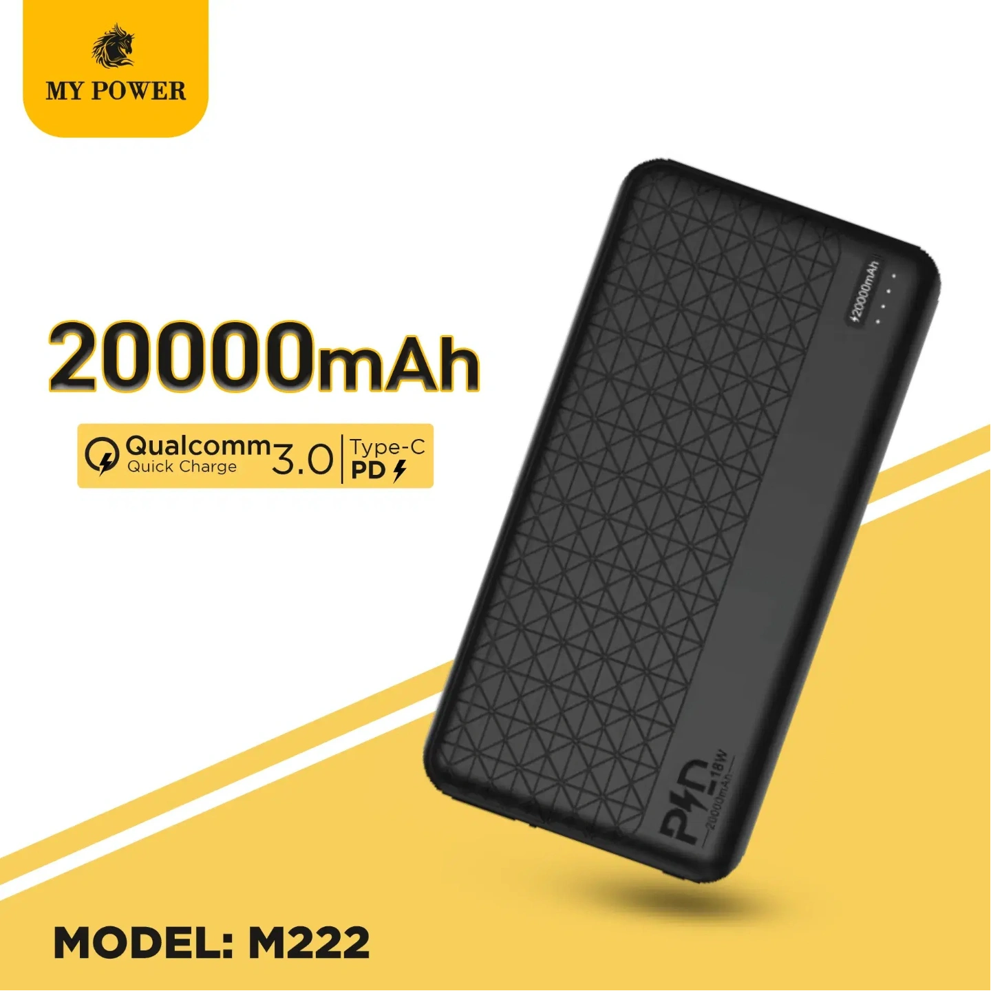 The MyPower M205 20000mAh Power Bank is a high-performance, fast-charging solution designed to keep your devices powered up anytime, anywhere. Equipped with a powerful 20000mAh polymer battery, this power bank ensures extended backup for smartphones, tablets, and other USB-powered gadgets. It supports PD (Power Delivery) and QC 3.0 fast charging with up to 22.5W output, allowing you to charge your devices faster and more efficiently.