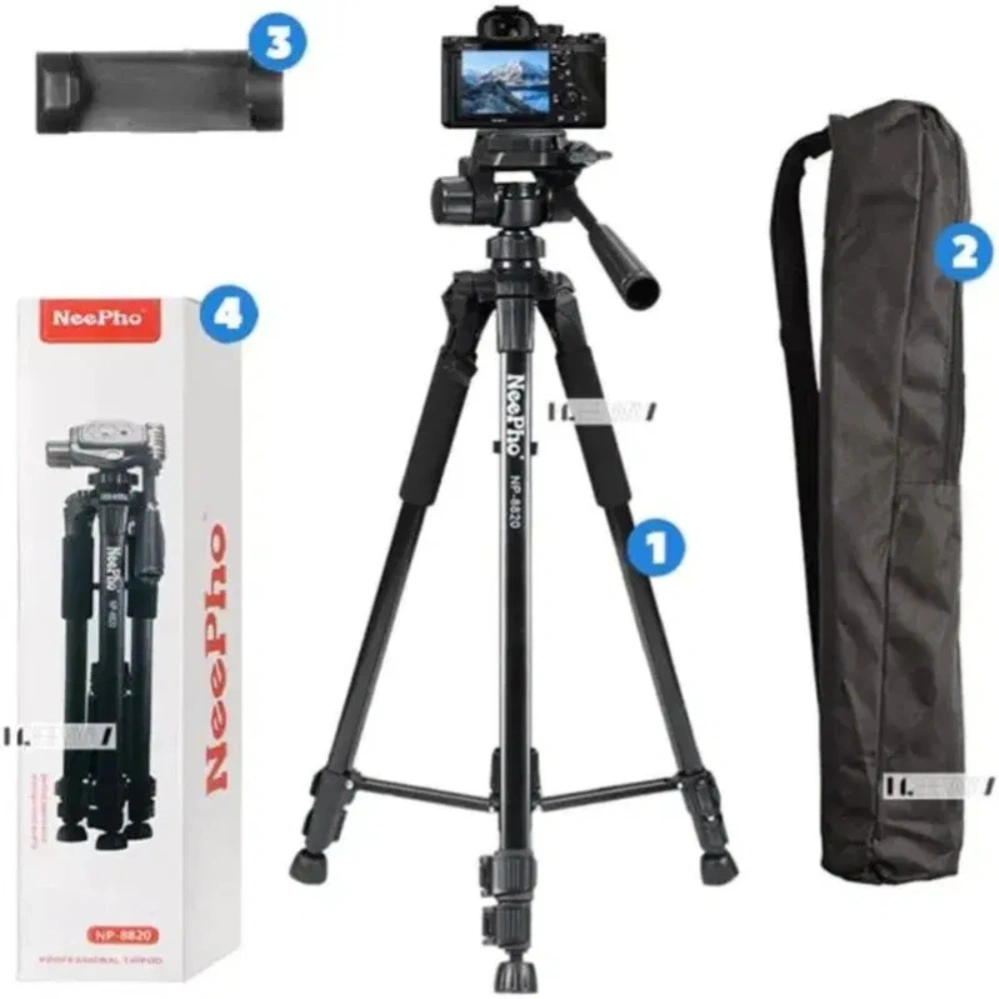 The Neepho NP-8820 tripod supports cameras and mobile devices with adjustable height and stable design. Ideal for photography, videography, content creation, and travel. Perfect for creators and everyday users throughout Nepal.