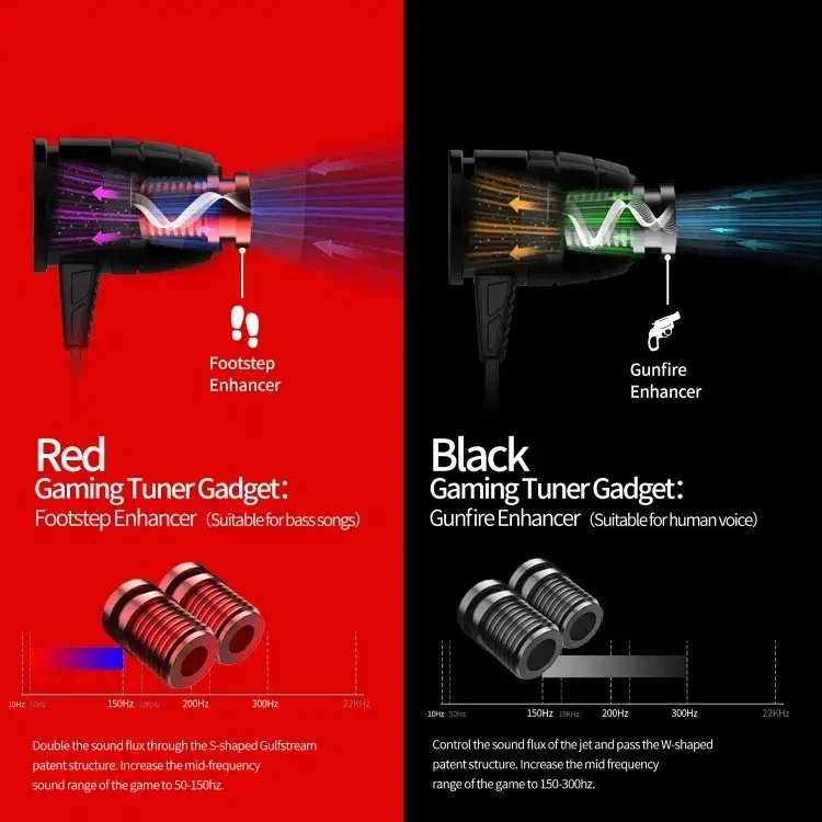 New enhance Bullet-shaped design comes with 2 different types of variable mount that can let you customize stereo sound of footstep or gunfire.