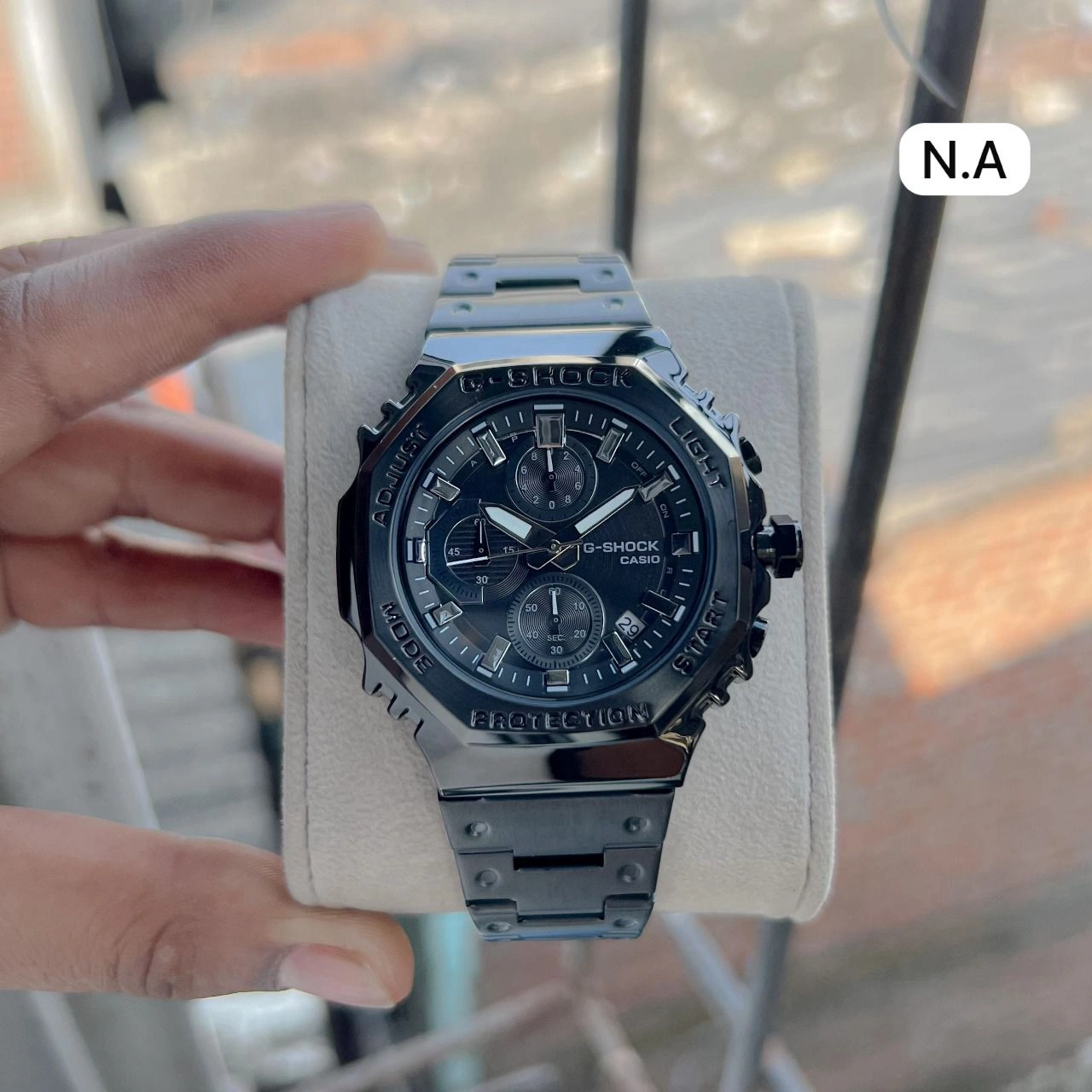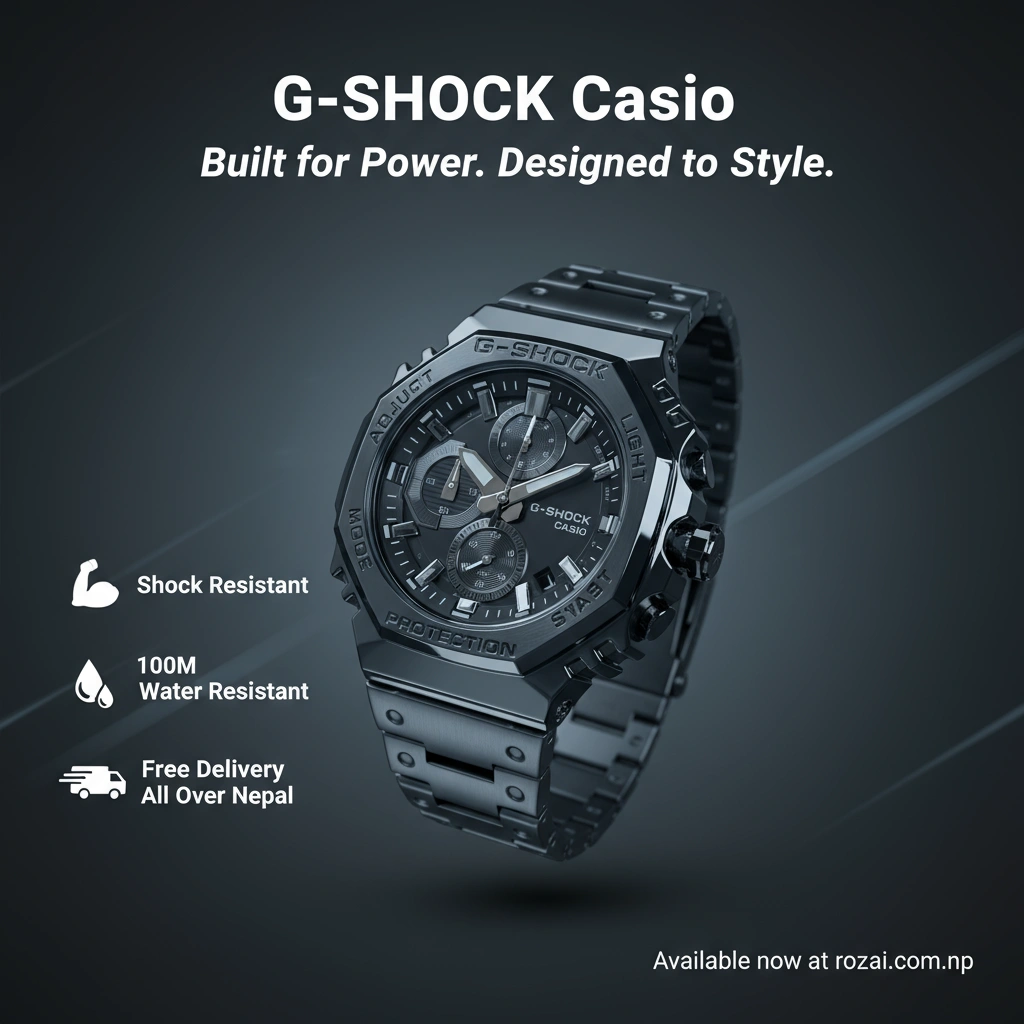 Premium G-Shock Octa Black Edition watch with stainless steel body and chronograph dial. Stylish, durable, and perfect for everyday wear.